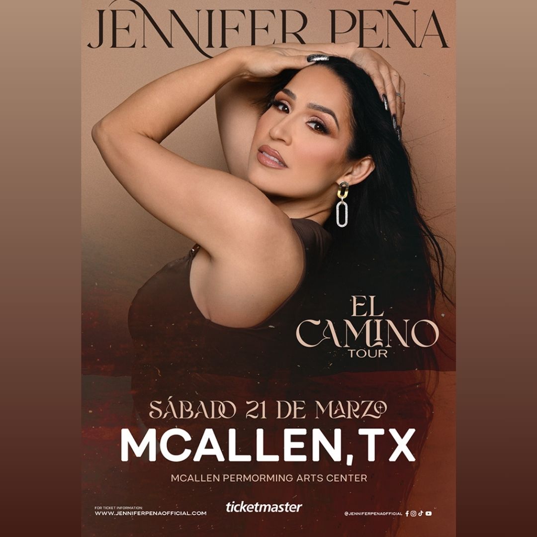 Jennifer Peña llega a McAllen con su El Camino Tour. Vive una noche inolvidable de música en vivo el 21 de marzo en el McAllen Performing Arts Center.